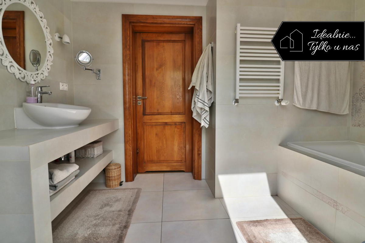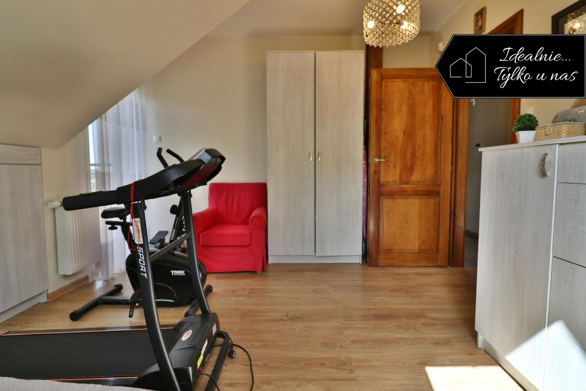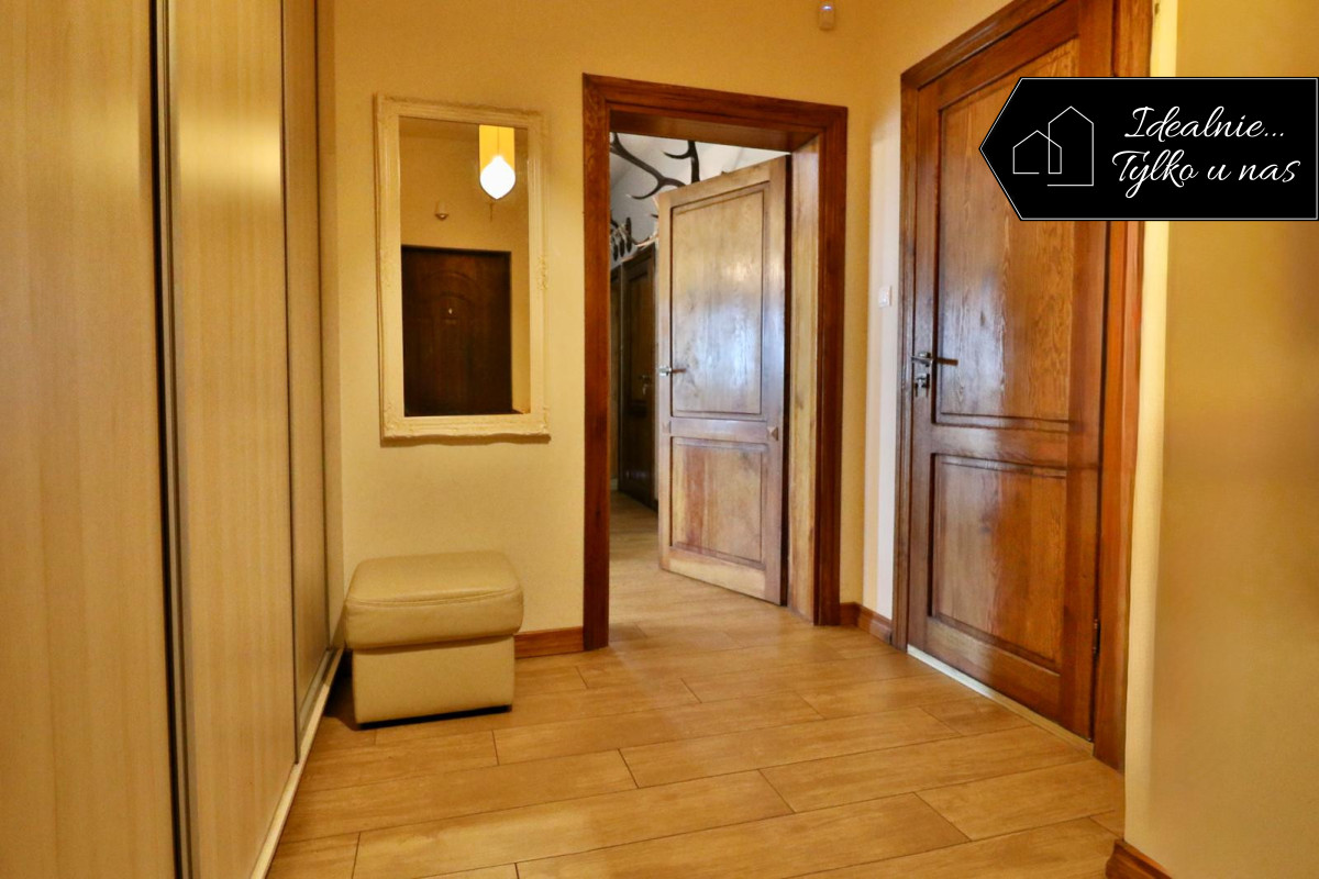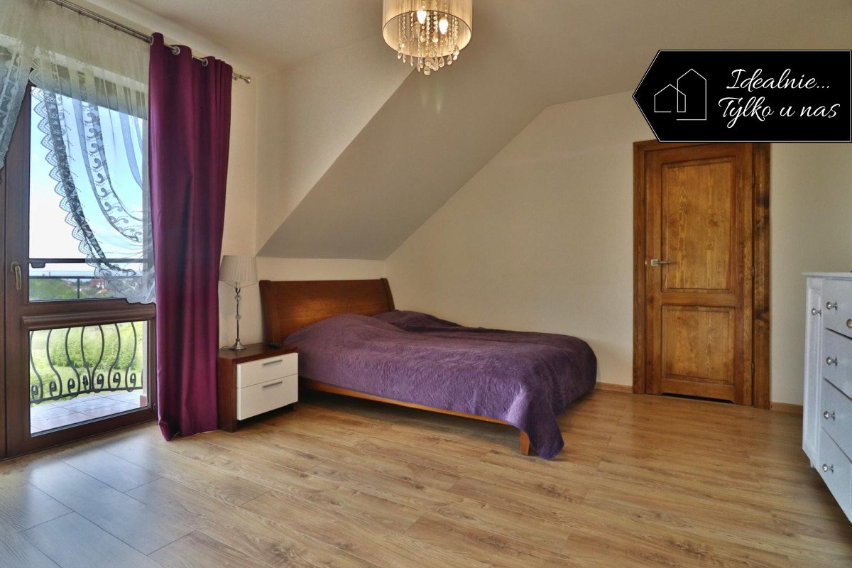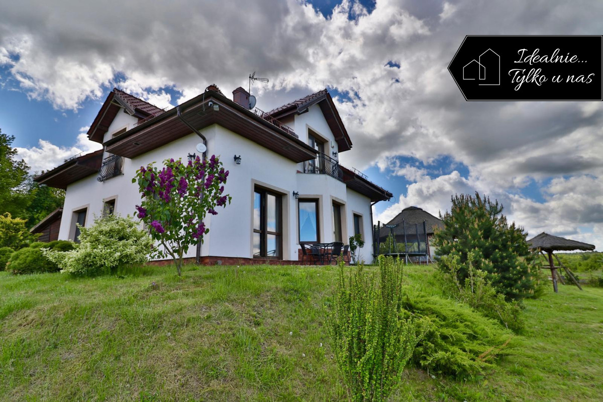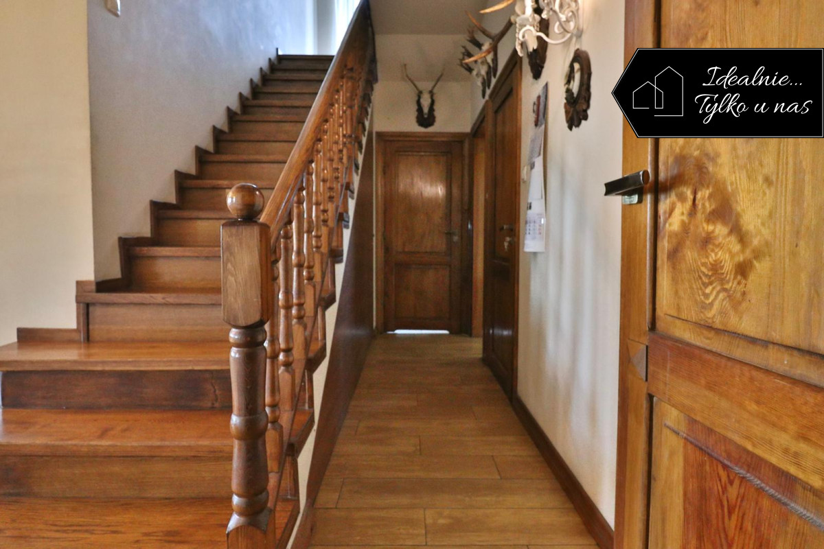 Wnętrze zostało zaprojektowane z dbałością o detale i wysoką jakość wykończenia. Dom składa się z 5 przestronnych pokoi, 2 eleganckich łazienek, garderoby, suszarni oraz garażu. Salon z kominkiem, klimatyczna jadalnia, funkcjonalna kuchnia w drewnie oraz przemyślane układy pomieszczeń zapewniają komfort codziennego życia.