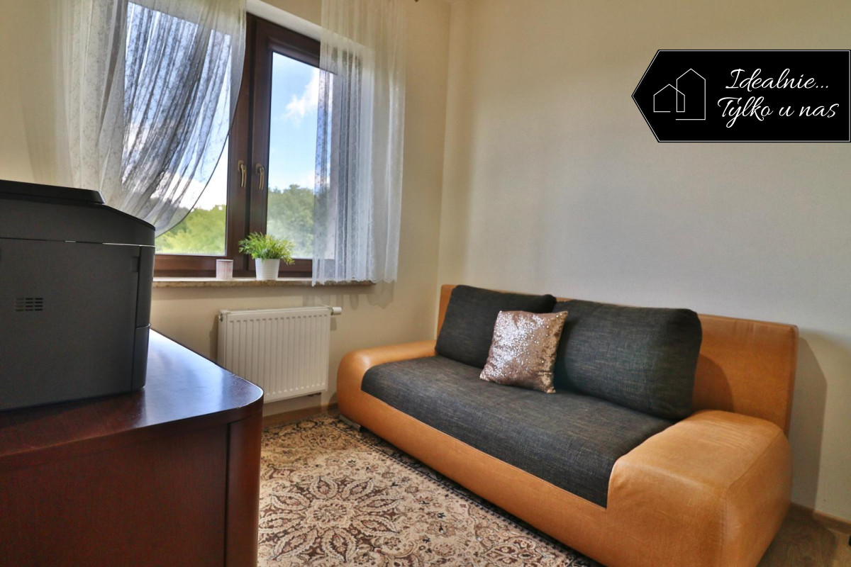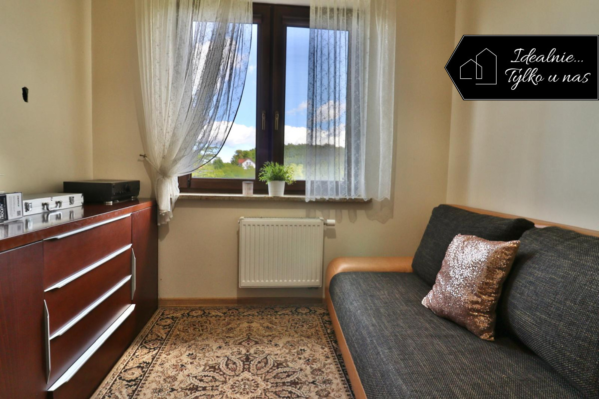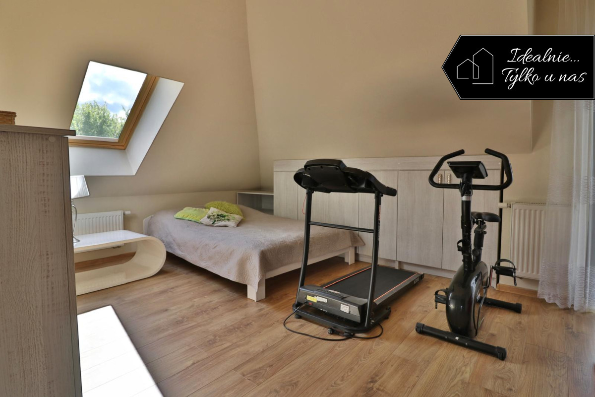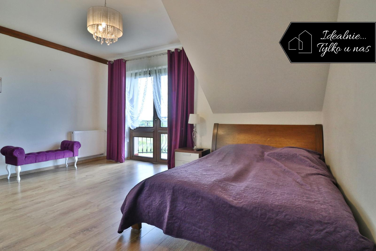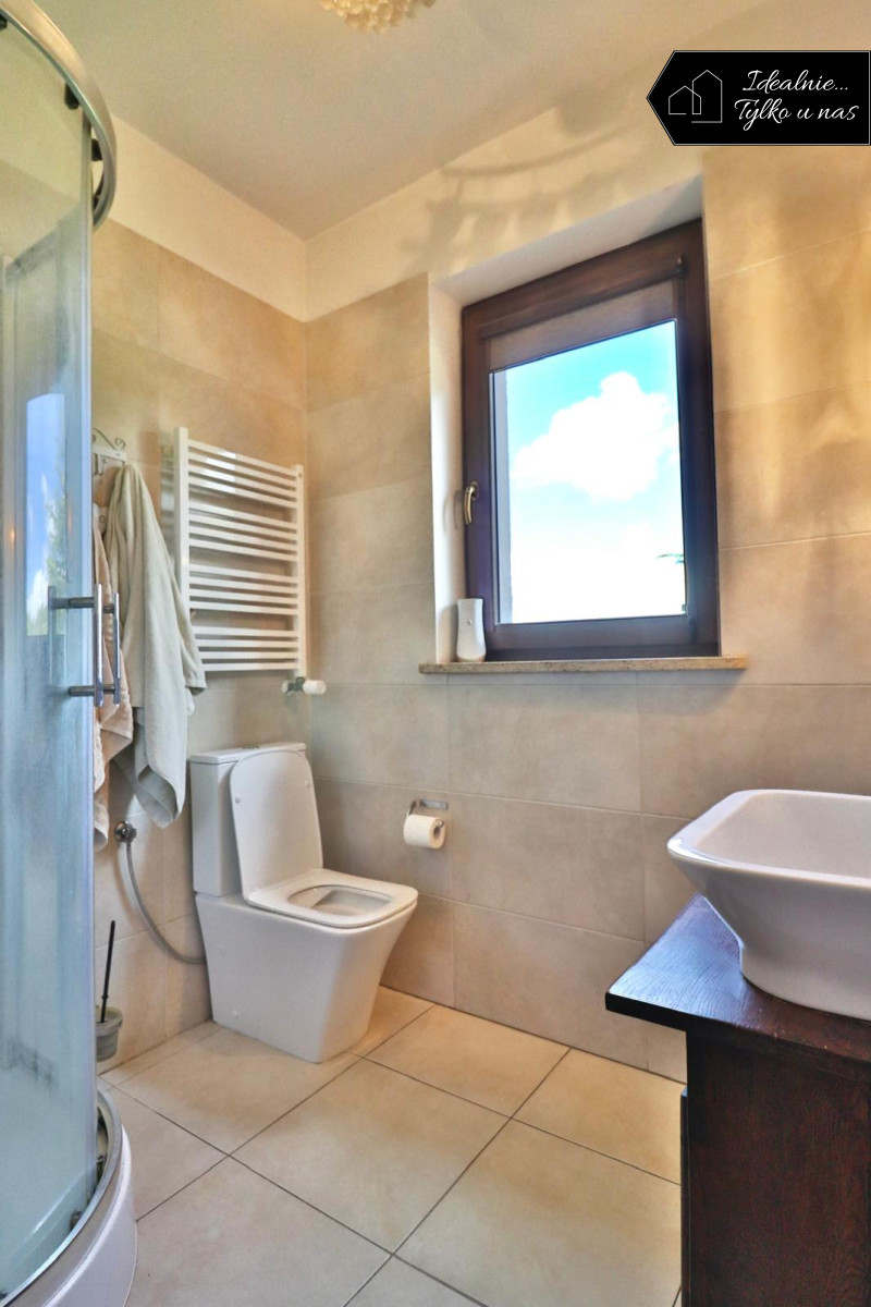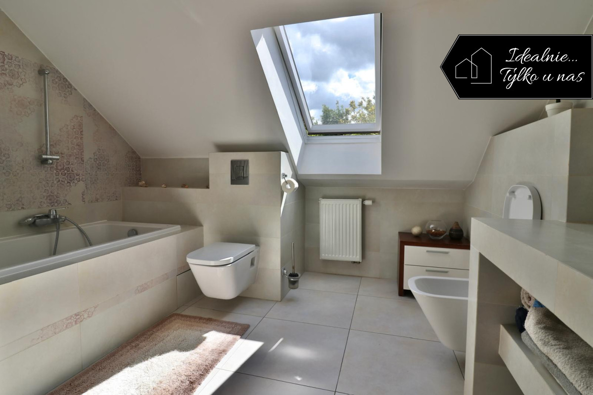 Wnętrze zostało zaprojektowane z dbałością o detale i wysoką jakość wykończenia. Dom składa się z 5 przestronnych pokoi, 2 eleganckich łazienek, garderoby, suszarni oraz garażu. Salon z kominkiem, klimatyczna jadalnia, funkcjonalna kuchnia w drewnie oraz przemyślane układy pomieszczeń zapewniają komfort codziennego życia.