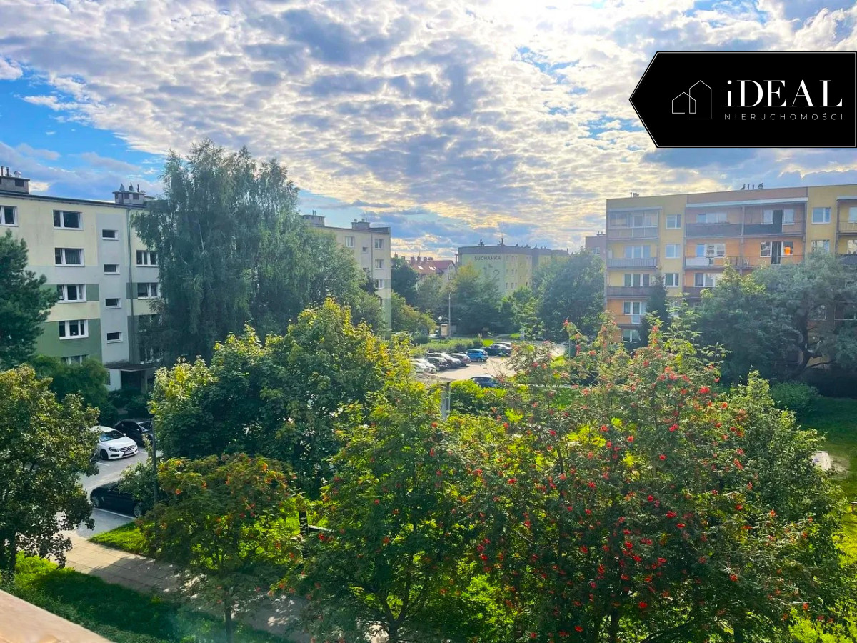 balkon - szeroki, z widokiem na zieleń i plac zabaw.