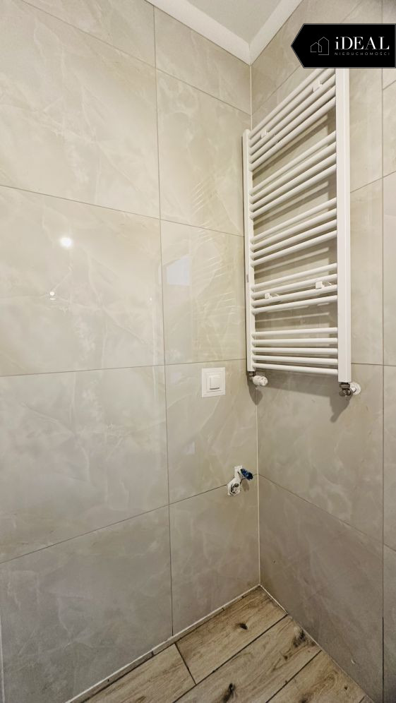 Mieszkanie zostało wykończone w 2024 roku, przygotowane do umeblowania - ściany są gładkie i pomalowane, na podłodze położono nowe panele, a łazienka została wykończona kaflami.