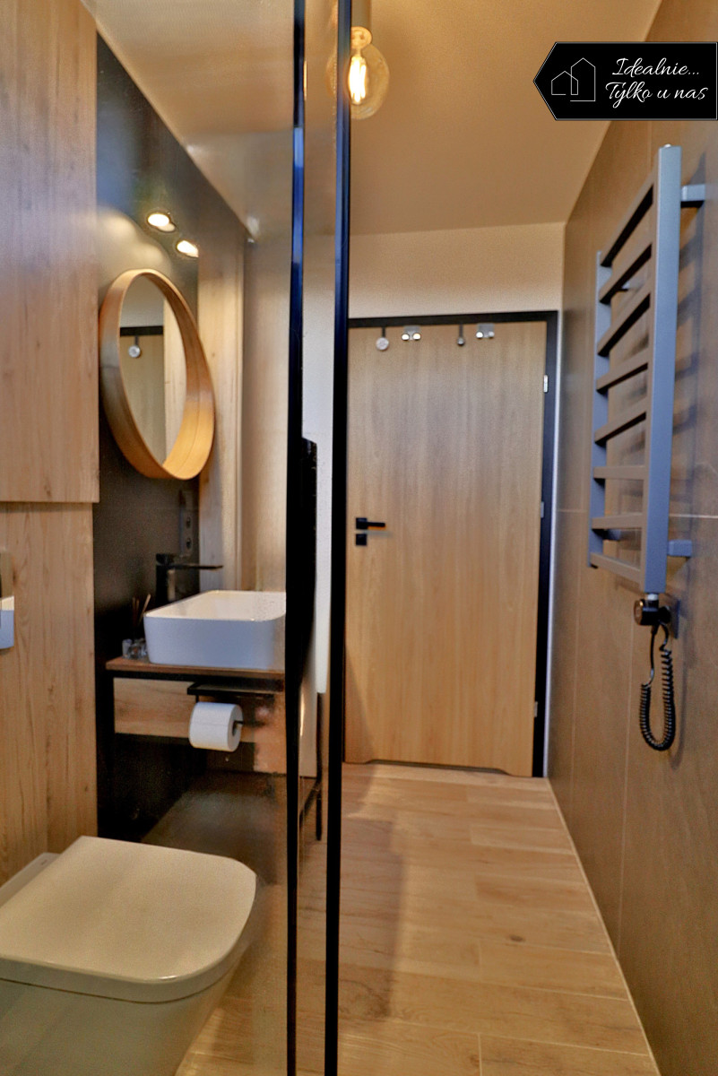 Lokal składa się z jasnego salonu z wyjściem na balkon, sypialni, osobnej otwartej kuchni z oknem, łazienki oraz przestronnego przedpokoju. Kuchnia pozostaje w pełni wyposażona, a większość mebli, wykonanych na wymiar, pozostaje w cenie nieruchomości, co pozwala na natychmiastowe wprowadzenie się bez dodatkowych nakładów.
