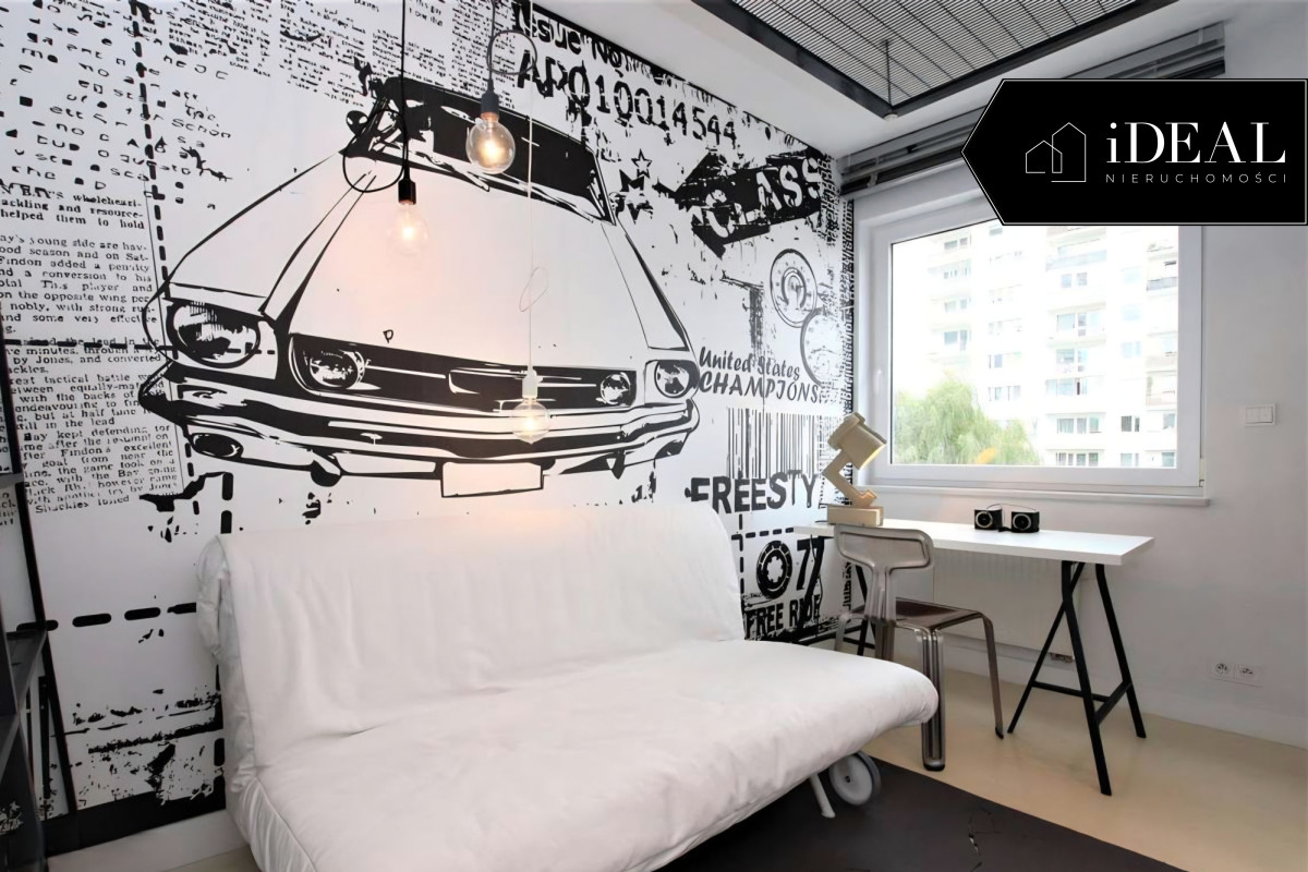 - salon z wydzieloną częścią sypialnianą i wyjściem na balkon,