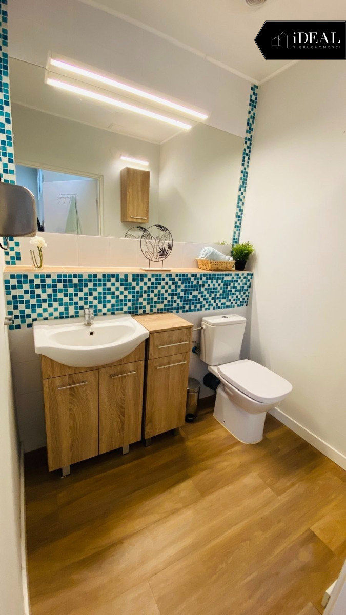 Lokal posiada status lokalu usługowego. Jest on zaaranżowany w sposób umożliwiający zarówno prowadzenie działalności, jak i funkcjonowanie jako mieszkanie. Bezpośrednio po wejściu, po lewej stronie, znajduje się pomieszczenie idealne do świadczenia usług — np. kosmetycznych — wyposażone w zlew pozostawiony przez właścicieli. W dalszej części lokal urządzony jest jak klasyczne mieszkanie, co zapewnia dużą elastyczność jego wykorzystania.