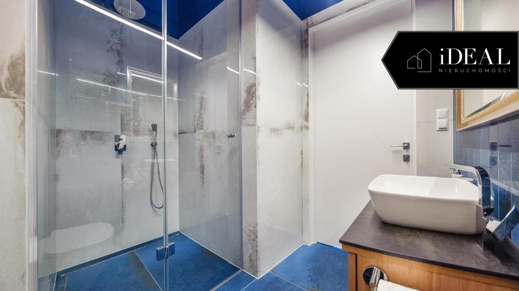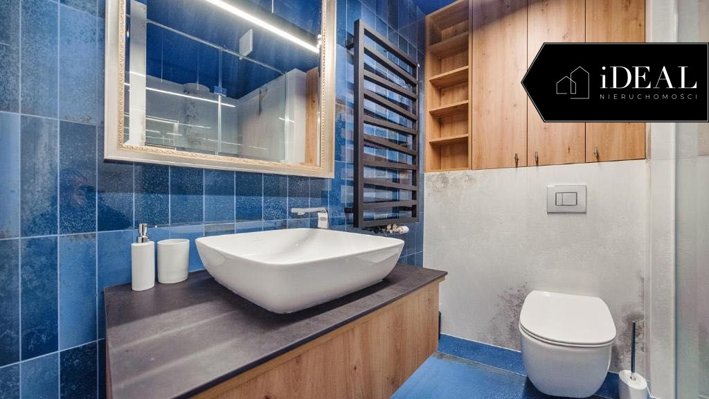 Mieszkanie zostało urządzone w wysokim standardzie, przy użyciu starannie dobranych materiałów, takich jak naturalny marmur, drewniana podłoga czy stylowe gzymsy dekoracyjne.