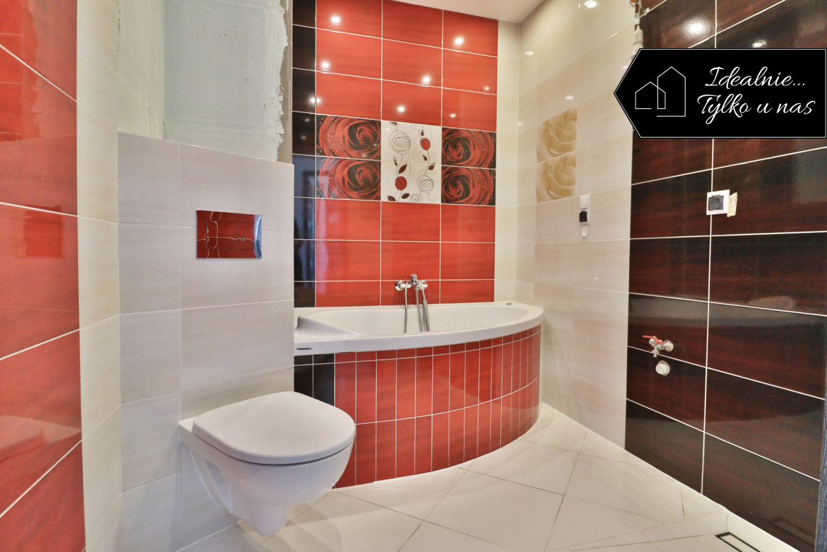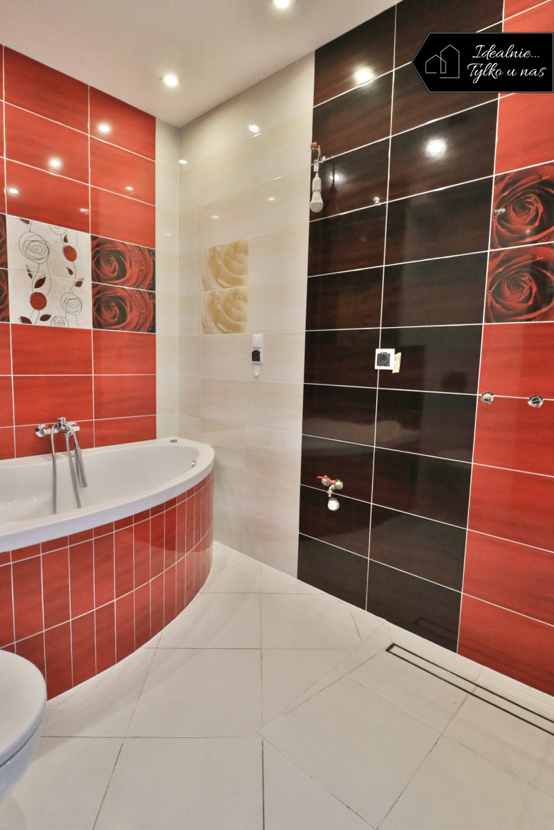 komfortowa łazienka z wanną i prysznicem,
