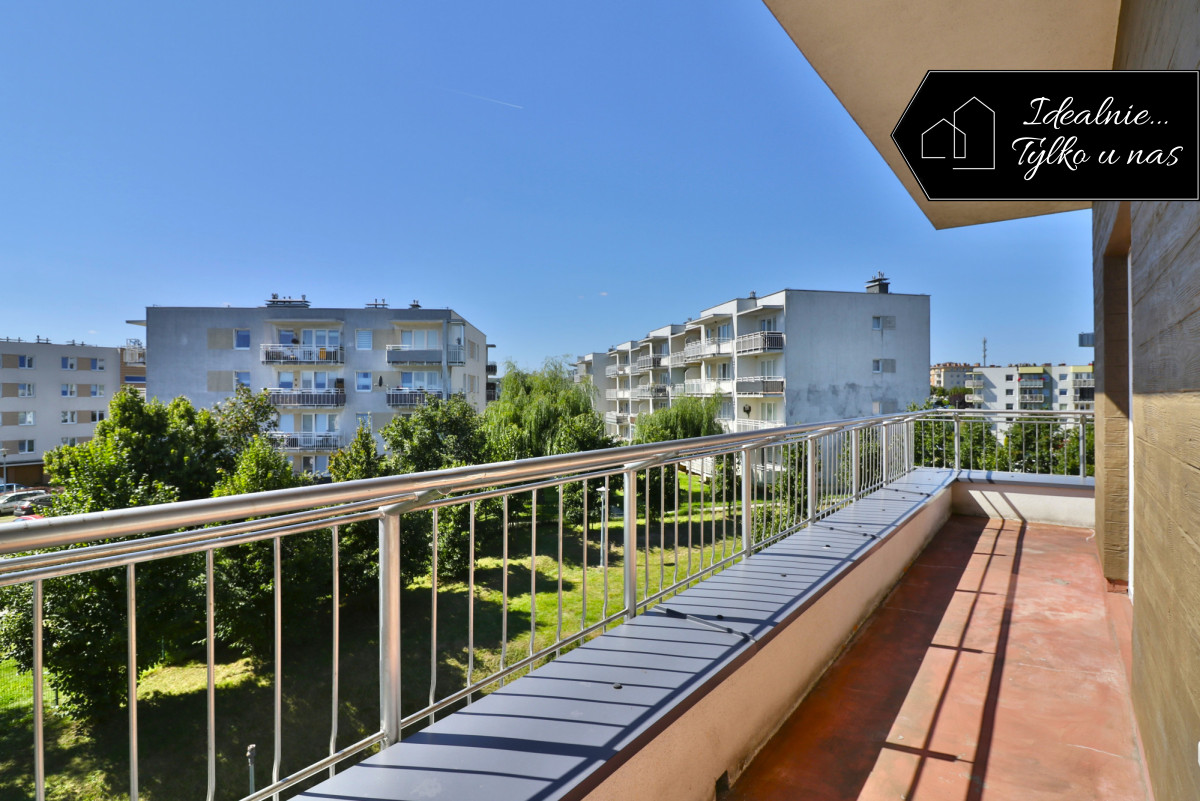 Mieszkanie jest bardzo dobrze doświetlone, dzięki narożnej ekspozycji i dużym oknom. Balkon biegnący wzdłuż mieszkania zapewnia dodatkową przestrzeń rekreacyjną i widok na zieleń.